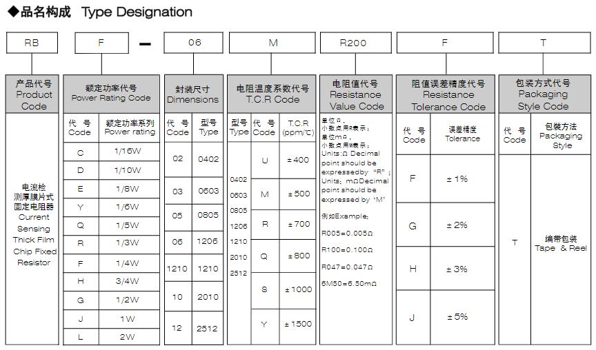 風華車規抗硫化厚膜片式固定電阻器型號命名規則: