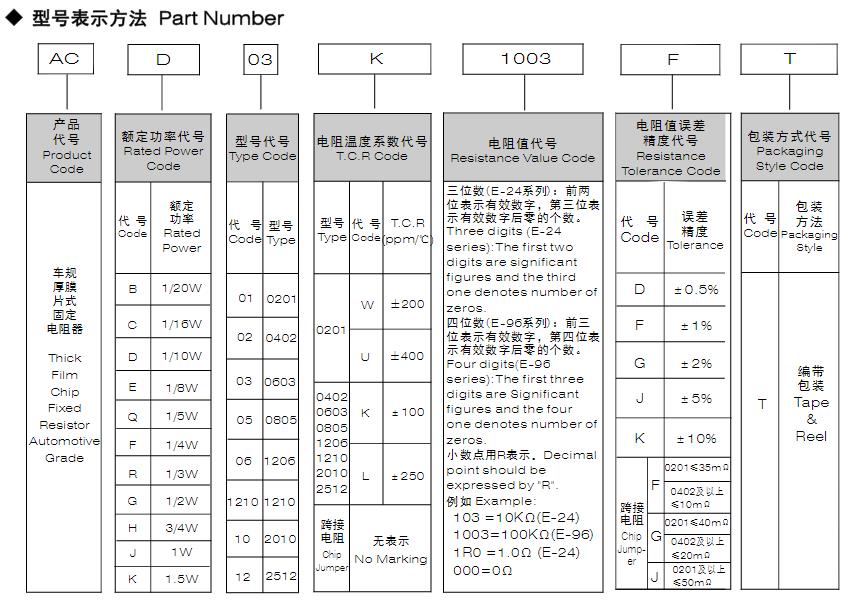 風華車規厚膜片式固定電阻器型號命名規則: