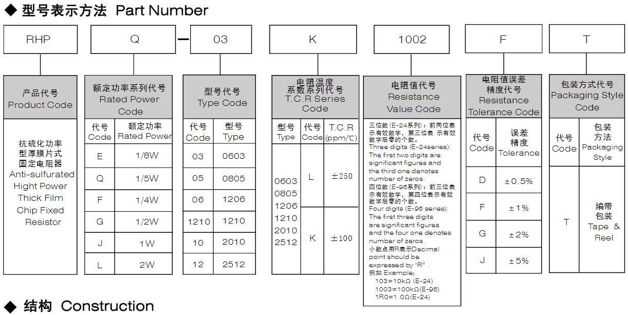 風華高科抗硫化功率型厚膜片式固定電阻器型號命名規則:
