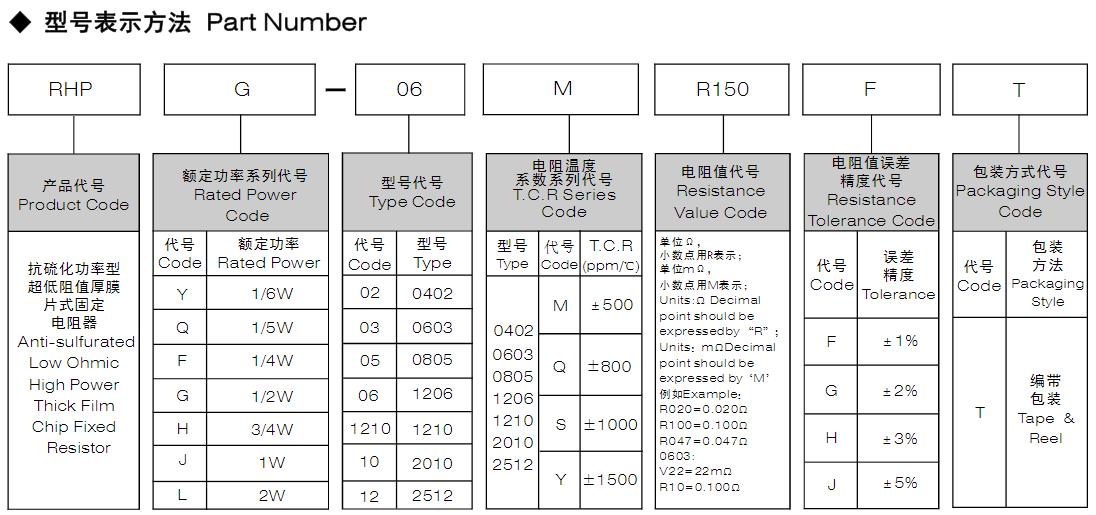 風華高科抗硫化功率型超低阻值厚膜片式固定電阻器型號命名規則: