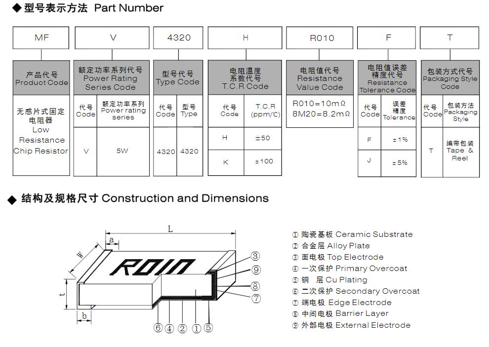 風華高科無感片式固定電阻器 型號命名規則:
