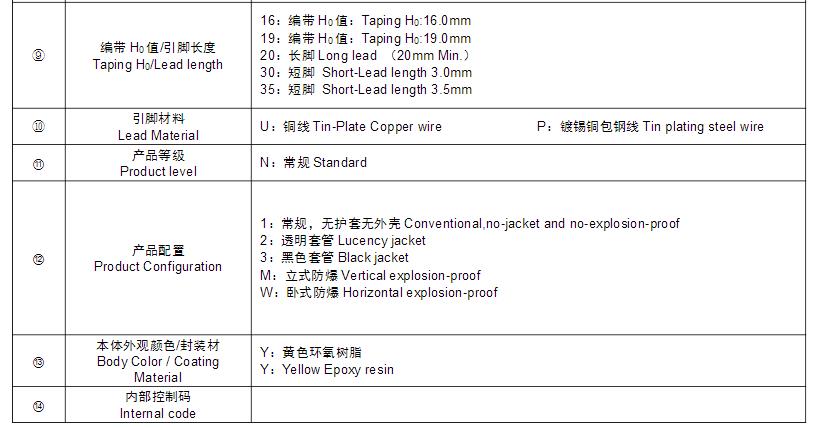 風華高科H系列壓敏電阻器型號命名規則:
