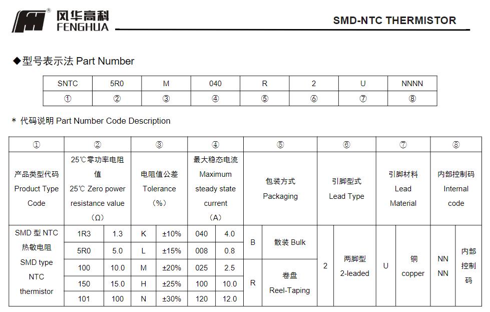 風華高科NTC貼片熱敏電阻命名規則: