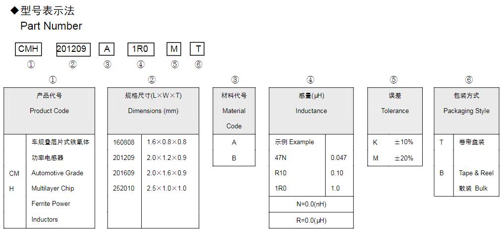 風華高科疊層片式鐵氧體功率電感器命名規則: