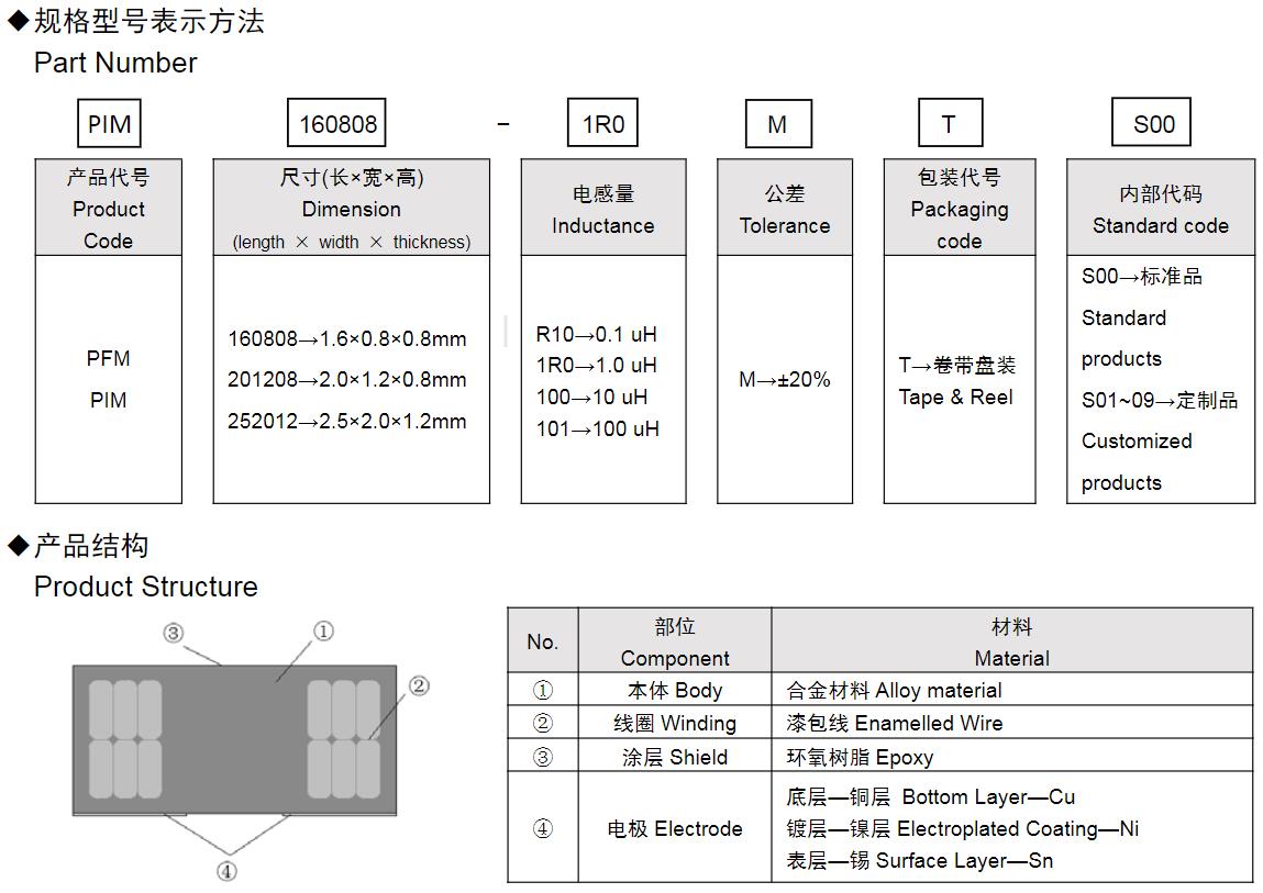 風華高科PIM&PFM系列功率電感器命名規則: