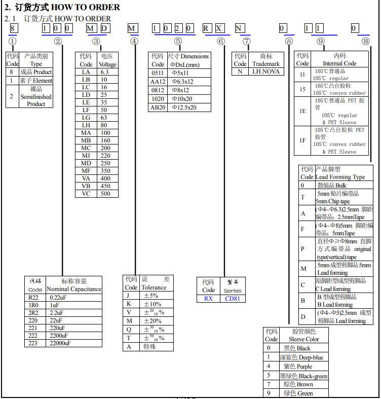 風華高科電解電容命名規則對照表: