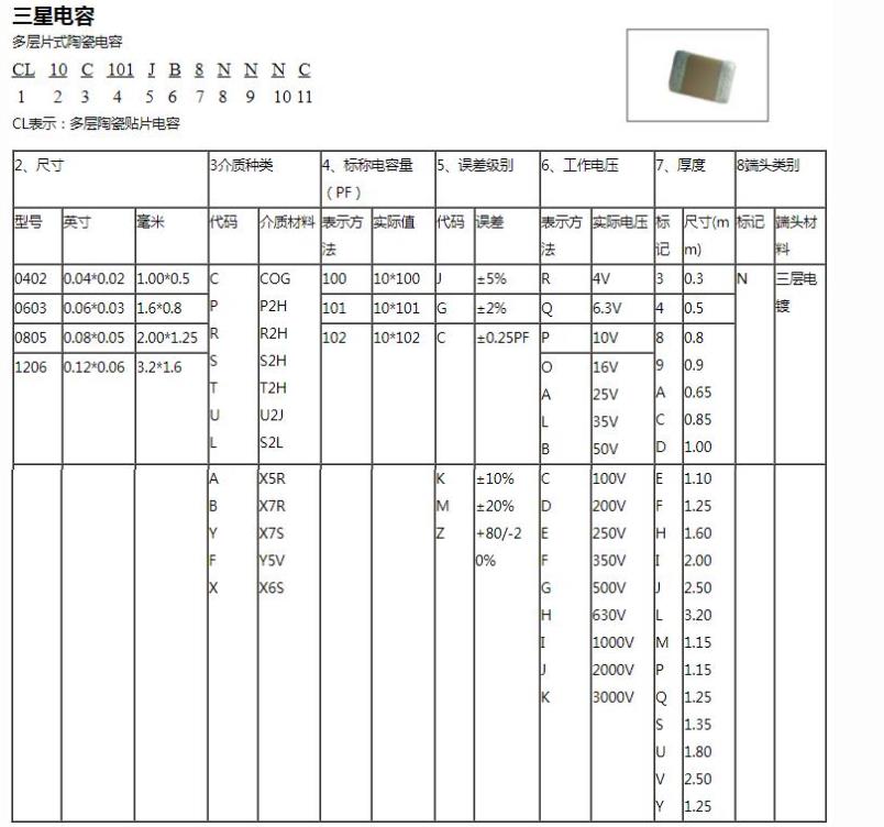 三星(SAMSUNG)貼片電容-最近很多人電子采購員在采購三星貼片電容,不知道三星貼片電容規格型號,參數怎么表示方法:今天超翔電子小編整理了三星貼片電容規格對照表供大家參考:希望對您有所幫助。如需要采購三星貼片電容,請聯系超翔電子銷售業務員,我們會跟據您的需求進行合理的報價,讓你買的開心用的放心!