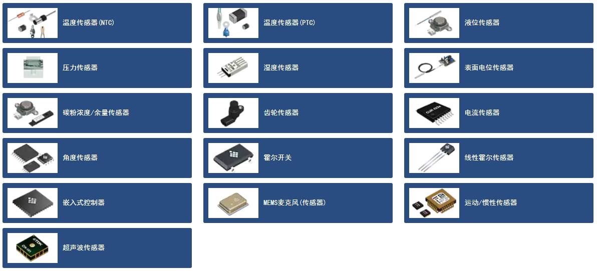 TDK公司的完整系列傳感器以TDK、EPCOS、InvenSense、Micronas和Tronics等產品品牌銷售,包括溫度傳感器、壓力傳感器、角度傳感器、電流傳感器。 精確的電流傳感器是電動汽車的智能電源和智能電網不可缺少的。例如,溫度傳感器和傳感器系統被用來調節冰箱和空調系統的溫度,或者測量電動汽車工作液的溫度。壓力傳感器廣泛應用于汽車、工業電子、醫療工程和環境技術等用途?;诨魻杺鞲衅骰騎MR技術的磁場傳感器幾乎可以在任何需要測量位置、直線或旋轉運動、甚至電流的機器上找到。 基于運動的設備在三維空間內檢測和跟蹤物體的運動,從而使許多消費電子設備(包括移動電子設備、可穿戴電子設備、智能家居電子設備、汽車和工業電子設備)具有關鍵功能。對于運動傳感的高性能要求,TDK提供MEMS產品,如用于導航、運動跟蹤和運動控制以及光學穩定的加速度計和陀螺儀。