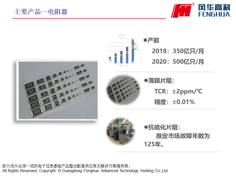 風華高科具有完整與成熟的產品鏈,具備為通訊類、消費類、計算機類、汽車電子類、照明電器類等電子整機整合配套供貨的大規模生產能力。